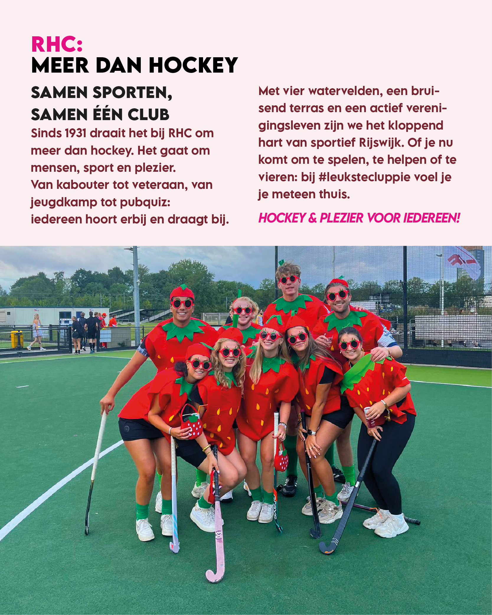 Bij RHC train je één of twee keer per week en speel je op zondag je wedstrijd. Na de wedstrijd begint de derde helft: gezellige naborrels, teamactiviteiten en natuurlijk het legendarische Thé Dansant. Hockey bij RHC is samen sporten, vieren én herinneringen maken. Zondag is jouw clubdag!